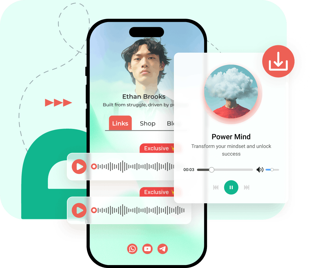 Put your tracks, episodes, or courses on your brandID link in bio. Fans preview, buy, and download in one flow — you keep creating.