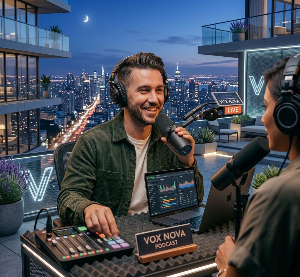 Drag and drop your MP3, WAV, AAC, or any audio file. Add a cover image, title, and description.